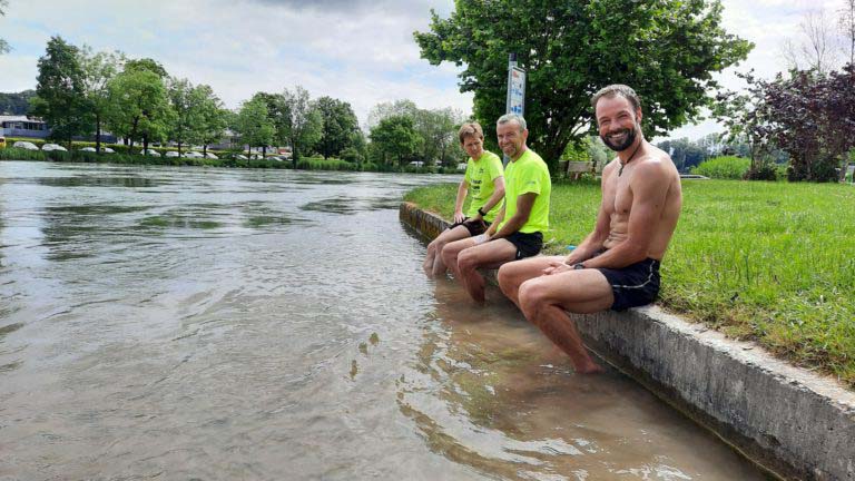 Ein kühles Fussbad nach dem Lauf: Martin Zürcher (vorne) nutzte nicht als Einziger die Gelegenheit, nach dem Lauf ein wenig auszuspannen.